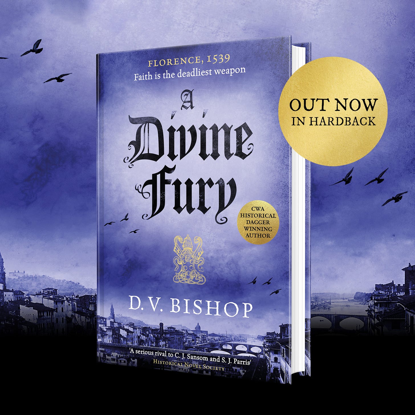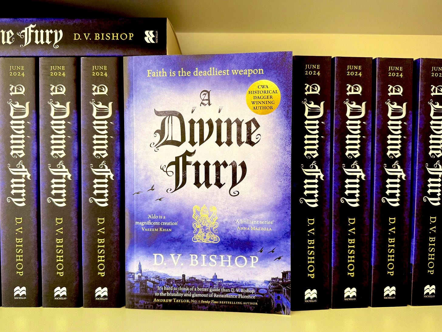 Pan Macmillan chose A Divine Fury as the title for the fourth Cesare Aldo historical thriller, continuing the tradition of me failing to name my own novels. I didn’t even suggest a name for this novel, which says something about its troubled gestation. The hardback, audiobook and ebook editions were all published 20th June 2024.