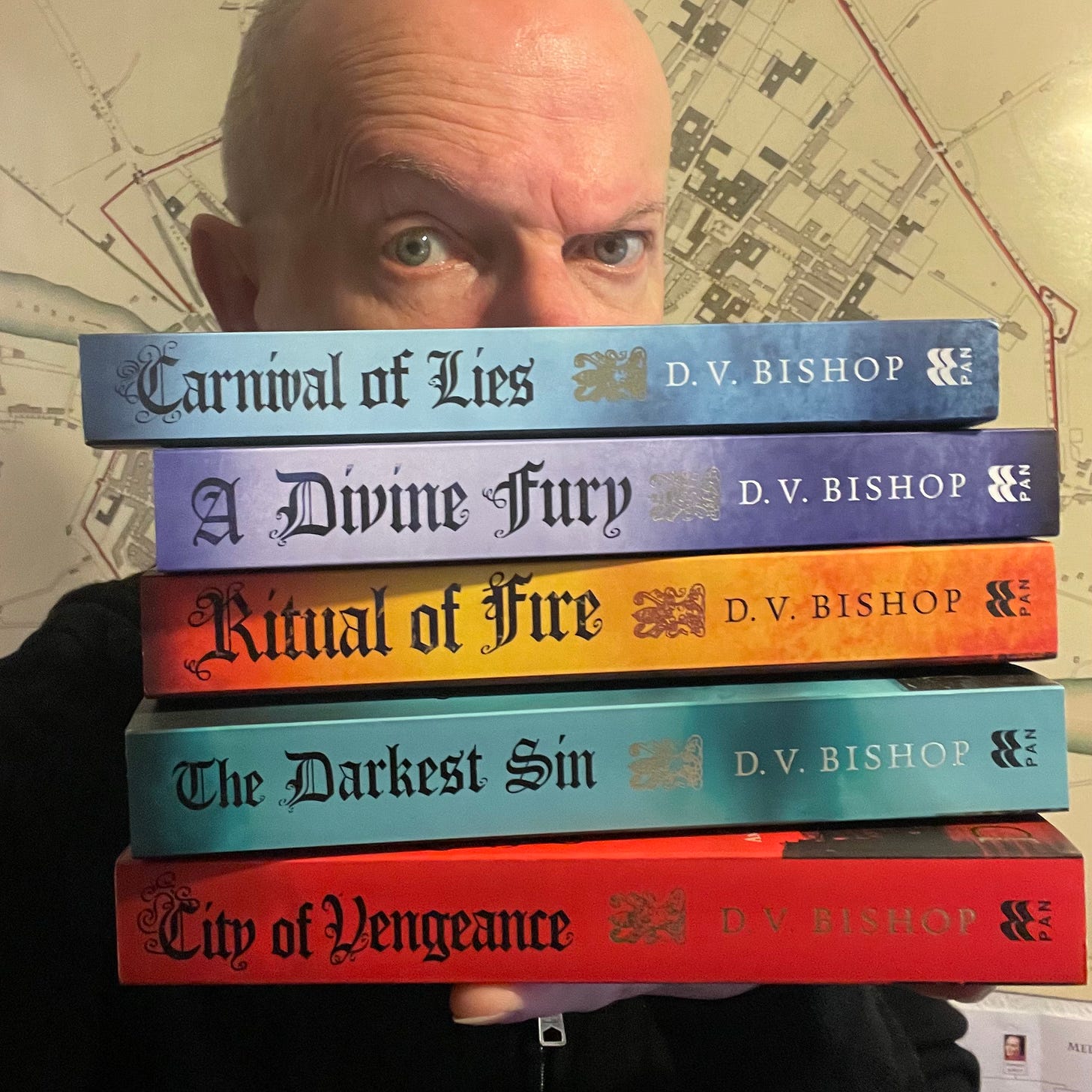 Welcome to the free newsletter of David (D. V.) Bishop, author of the Cesare Aldo historical thrillers set in Renaissance Italy. This time: behind the scenes of my fifth Aldo novel, who won the bundle of signed paperbacks, and news of a one-day deal…