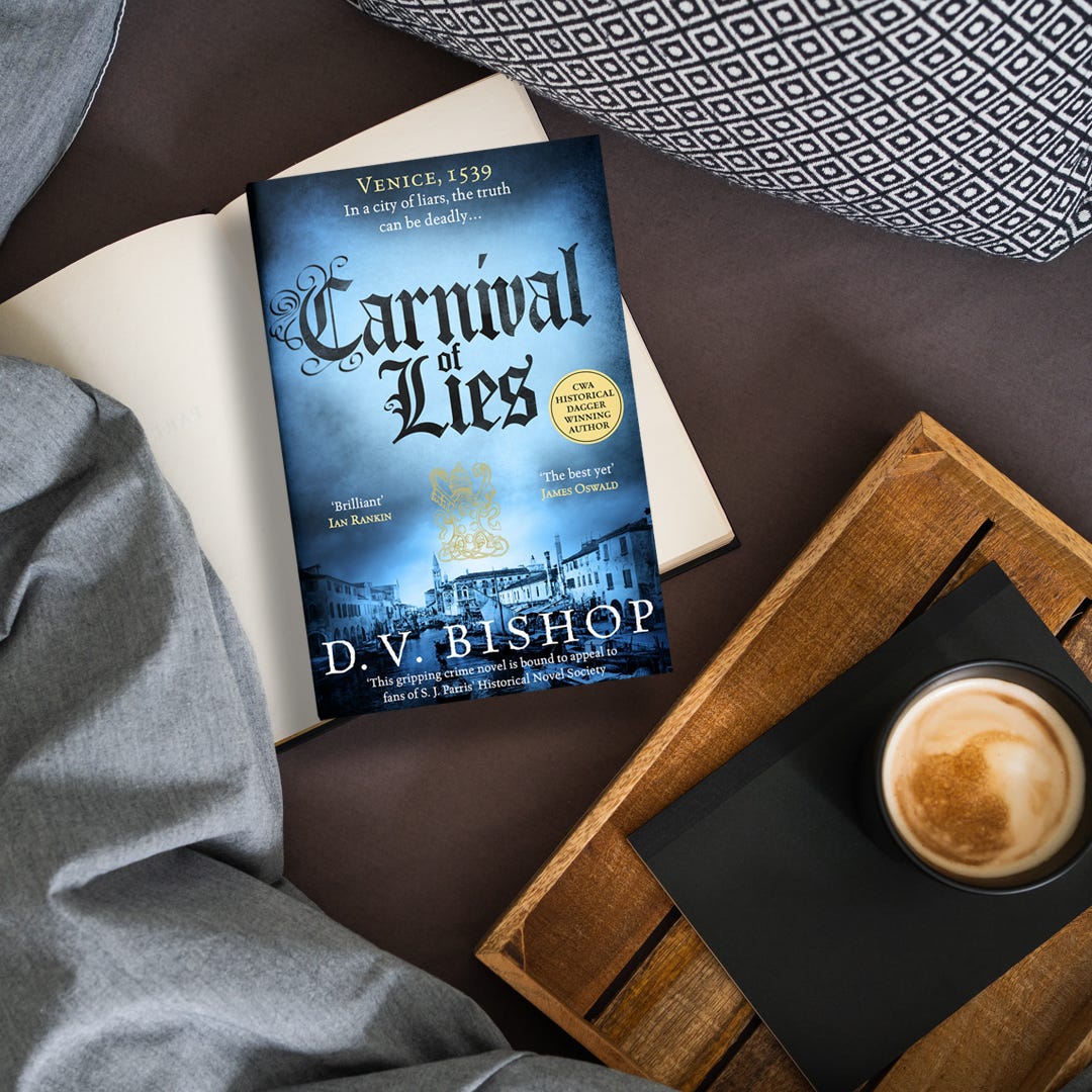 Pan Macmillan chose Carnival of Lies as the title for this Aldo novel, continuing the grand tradition of me failing to name my own books. All credit to my publisher for devising a perfect title without using the words Venice or Venetian in it – brava! The hardback, audiobook and ebook were all published 26th June 2025.