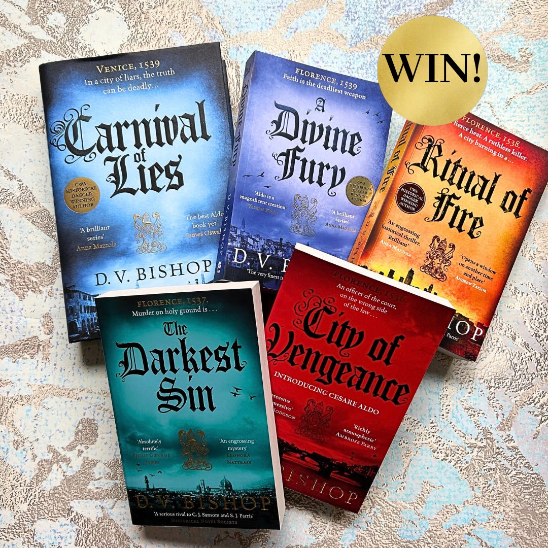 Welcome to the free newsletter of David (D. V.) Bishop, author of the Cesare Aldo historical thrillers set in Renaissance Italy. This time: a new competition.