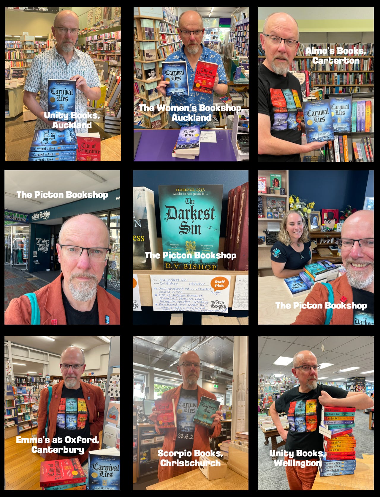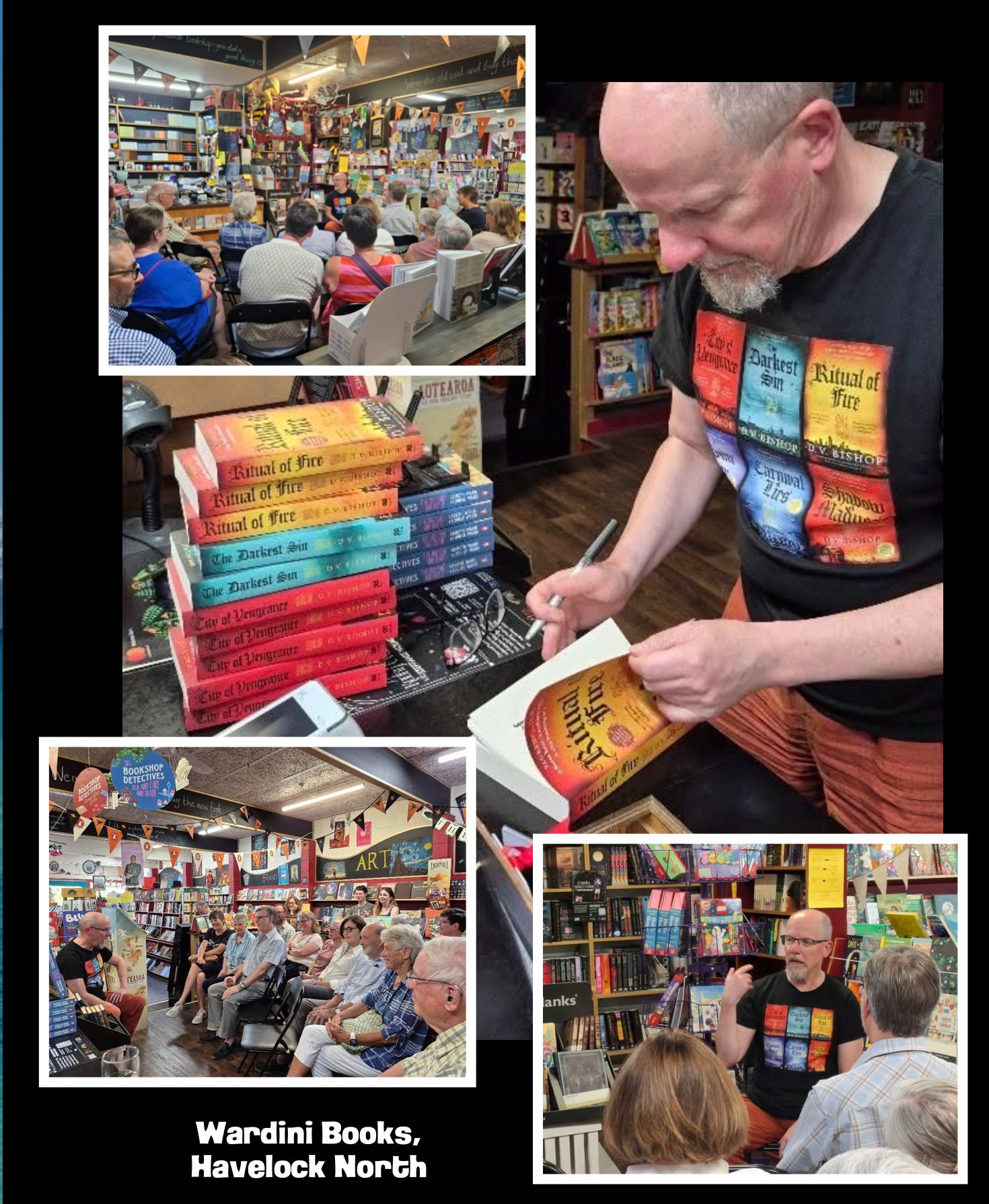 But I also found time to sneak in a few visits to several bookshops (see the photos above) and had an event hosted by the wonderful Wardini Books in Havelock North. I first went there in 2023 and was delighted to return. It gave me a chance to thank a reader who suggested a plot moment that featured in A Divine Fury.