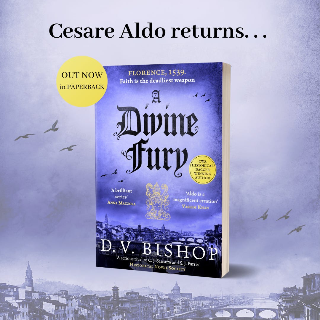 The fourth Cesare Aldo novel A Divine Fury comes out in paperback this Thursday, January 2nd. In it Aldo investigates a series of religious murders that set him against the most cunning killer he has ever hunted. Throw in exorcisms, zealotry and dark secrets – it’s a heady mix packed with danger and devilment! Get your copy here.